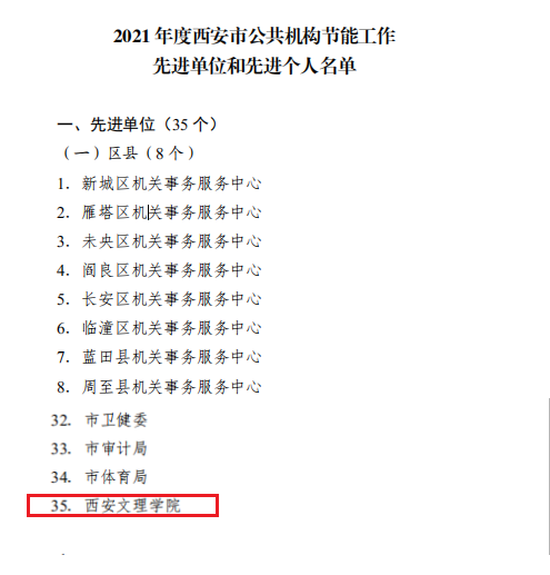 近日,西安市机关事务服务中心发布2021年度全市公共机构节能工作先进单位和先进个人名单,我校再次荣获全市公共机构节能工作先进单位。